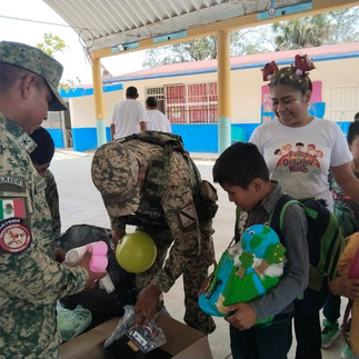 EJÉRCITO MEXICANO EN COORDINACION CON AUTORIDADES MUNICIPALES, ENTREGAN JUGUETES Y DULCES EN CELEBRACIÓN DEL DÍA DEL NIÑO