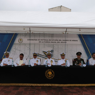 Tuxpan, Ver. Hoy se realizó la Entrega-Recepción del Mando de Armas de la Fuerza Naval del Golfo por acuerdo de la Comandanta Suprema de las Fuerzas Armadas, esto como parte de la rotación permanente del personal y con la finalidad de que la Secretaría de Marina-Armada de México continúe con el cumplimiento de su misión y atribuciones. Durante la ceremonia en presencia del Ciudadano Almirante José Manuel Salinas Pérez, Jefe de Operaciones Navales y Representante del Alto M