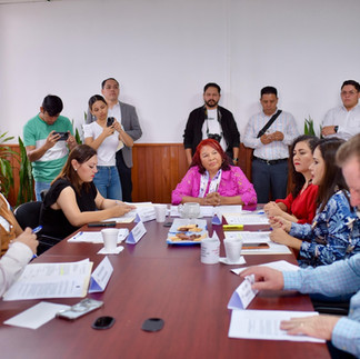 En el Palacio Legislativo celebraron sesión de trabajo las diputadas y los diputados Victoria Gutiérrez Pérez, presidenta, Guadalupe Vázquez González, secretaria, Ana Rosa Valdés Salazar, María Elena Córdova Molina, Luz Alicia Delfín Rodríguez, Juan Tress Zilli y Luis Vicente Aguilar Castillo, vocales.